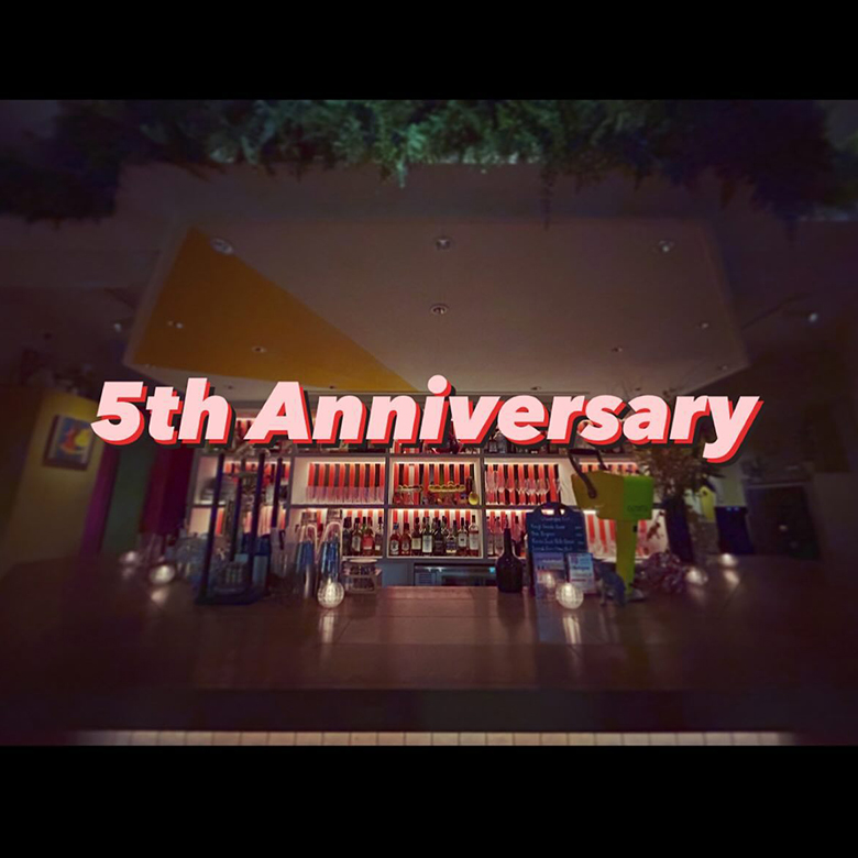 内装の至る所にちりばめられたピンクやブルーの鮮やかな配色はスペインのリゾートにある賑やかなBarを思わせます。