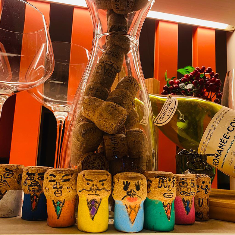The vivid pink and blue color scheme of the interior is reminiscent of a lively bar in a Spanish resort.